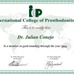 - Dr. Julian Conejo is now Member of International College of Prosthodontists.
